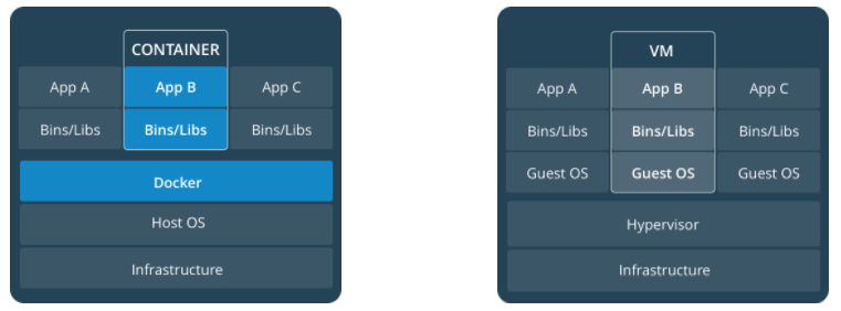 Docker 提供了被称为容器的松散隔离环境,在环境中可以打包和运行应用程序。隔离和安全性允许您在给定主机上同时运行多个容器。容器是轻量级的,因为它们不需要管理程序的额外负载,而是直接在主机的内核中运行。这意味着您可以在给定的硬件组合上运行更多容器,而不是使用虚拟机。你甚至可以在实际上是虚拟机的主机中运行 Docker 容器!